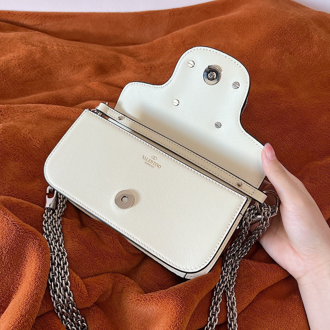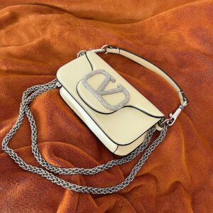 Valentino Loco Small Shoulder White Bag with Crystals Logo