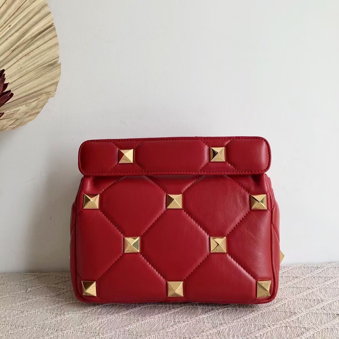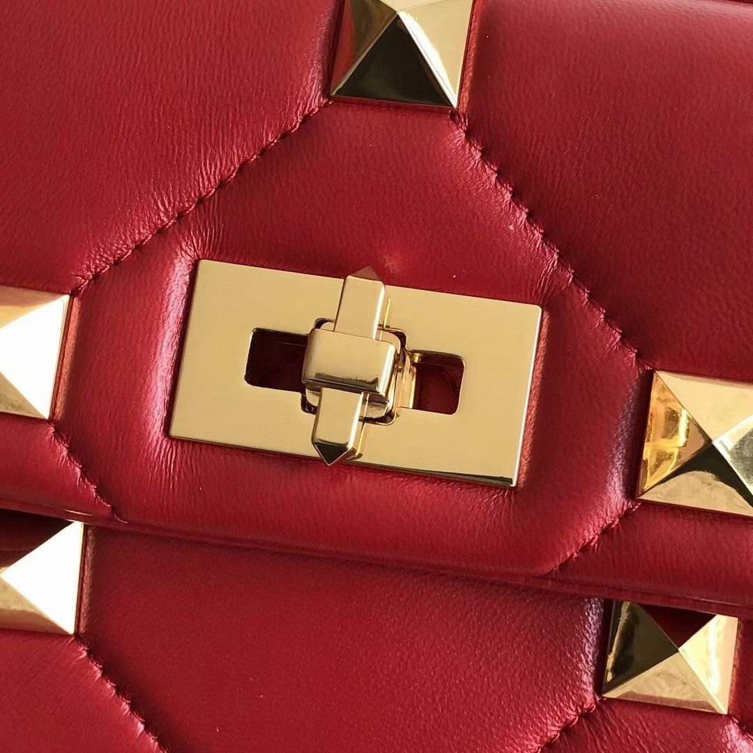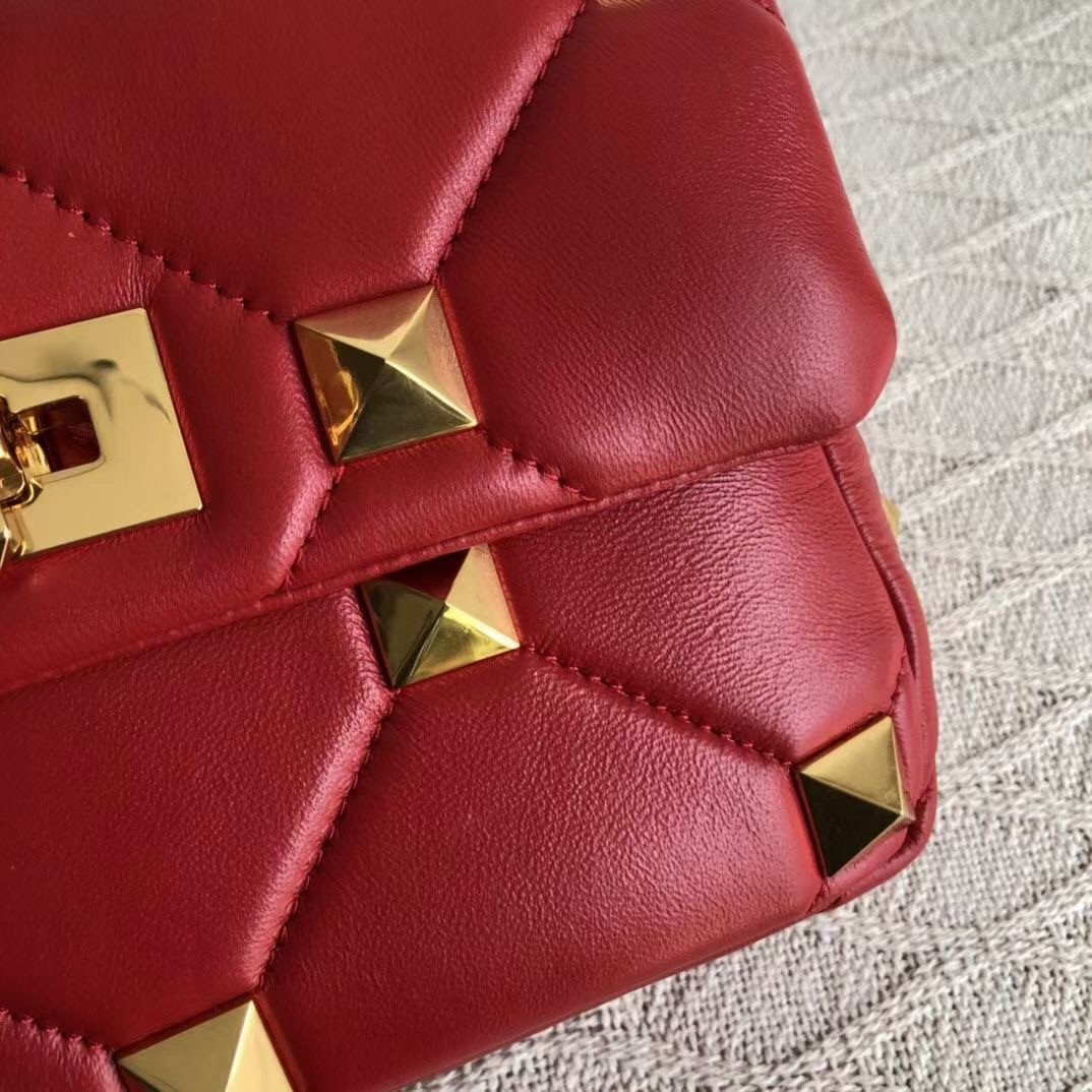 Valentino Medium Roman Stud Chain Bag In Red Nappa