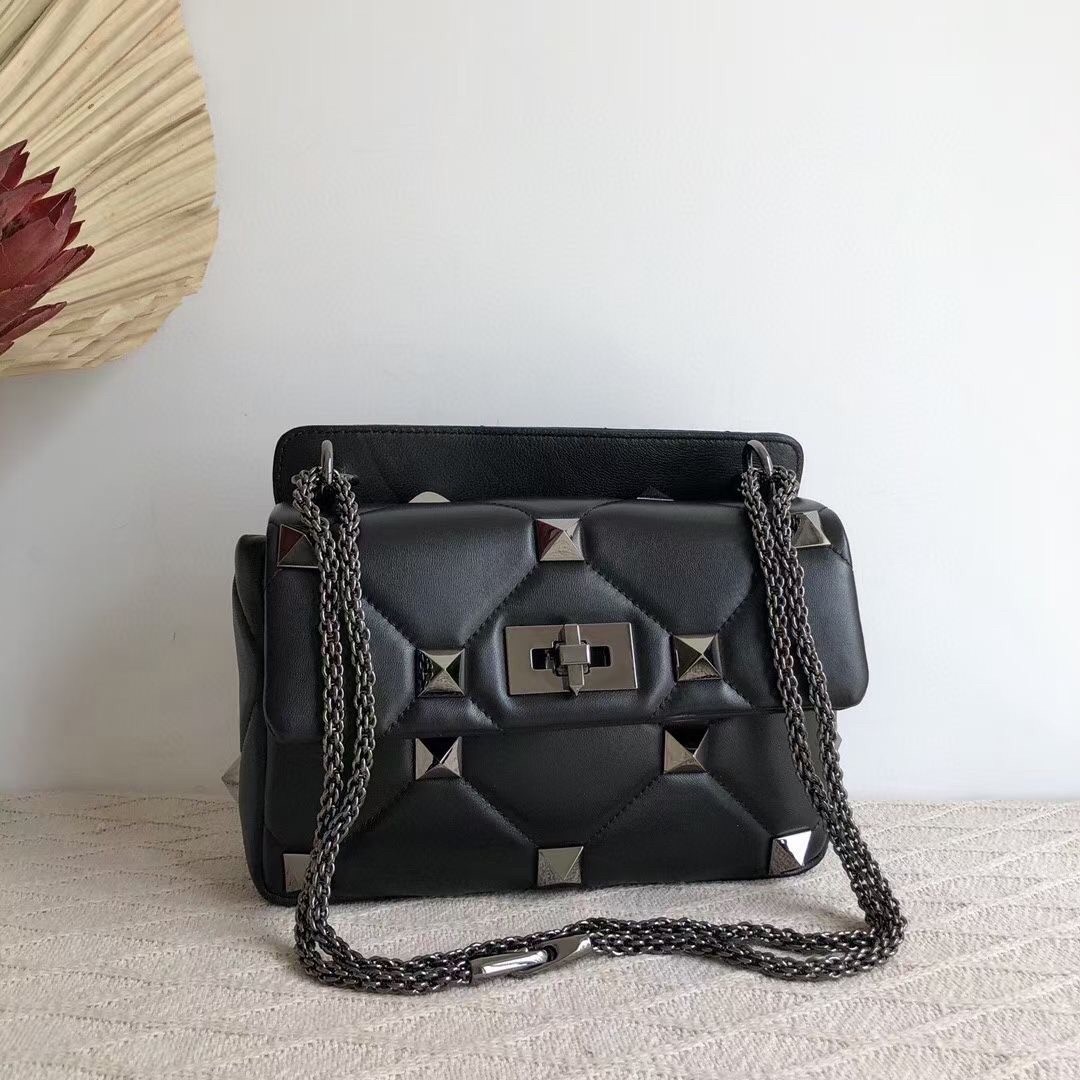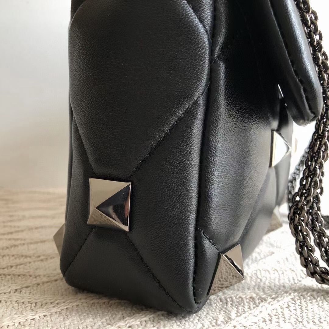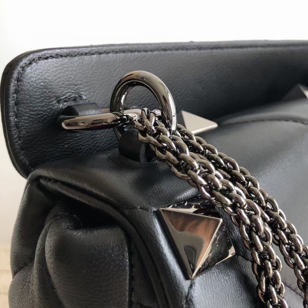 Valentino Medium Roman Stud Tonal Chain Bag In Noir Nappa