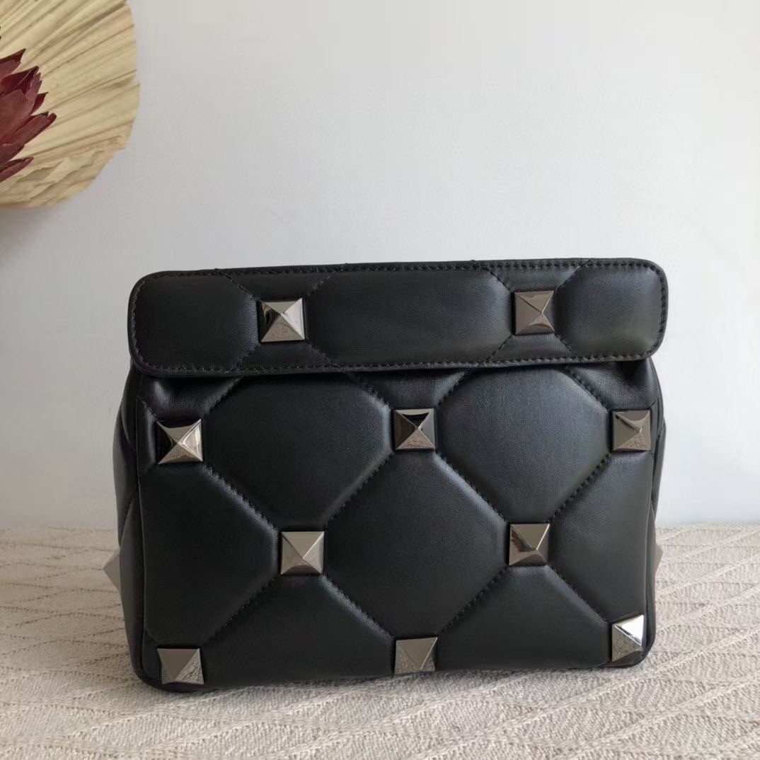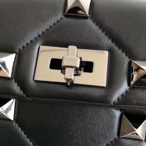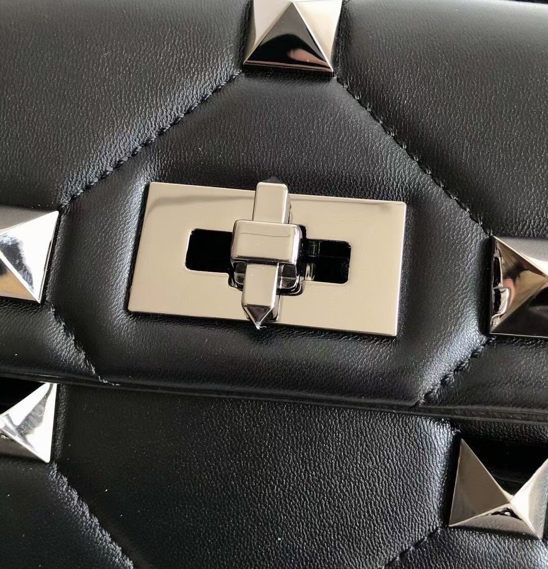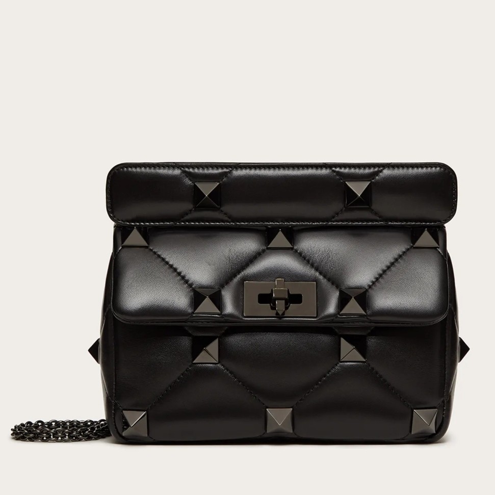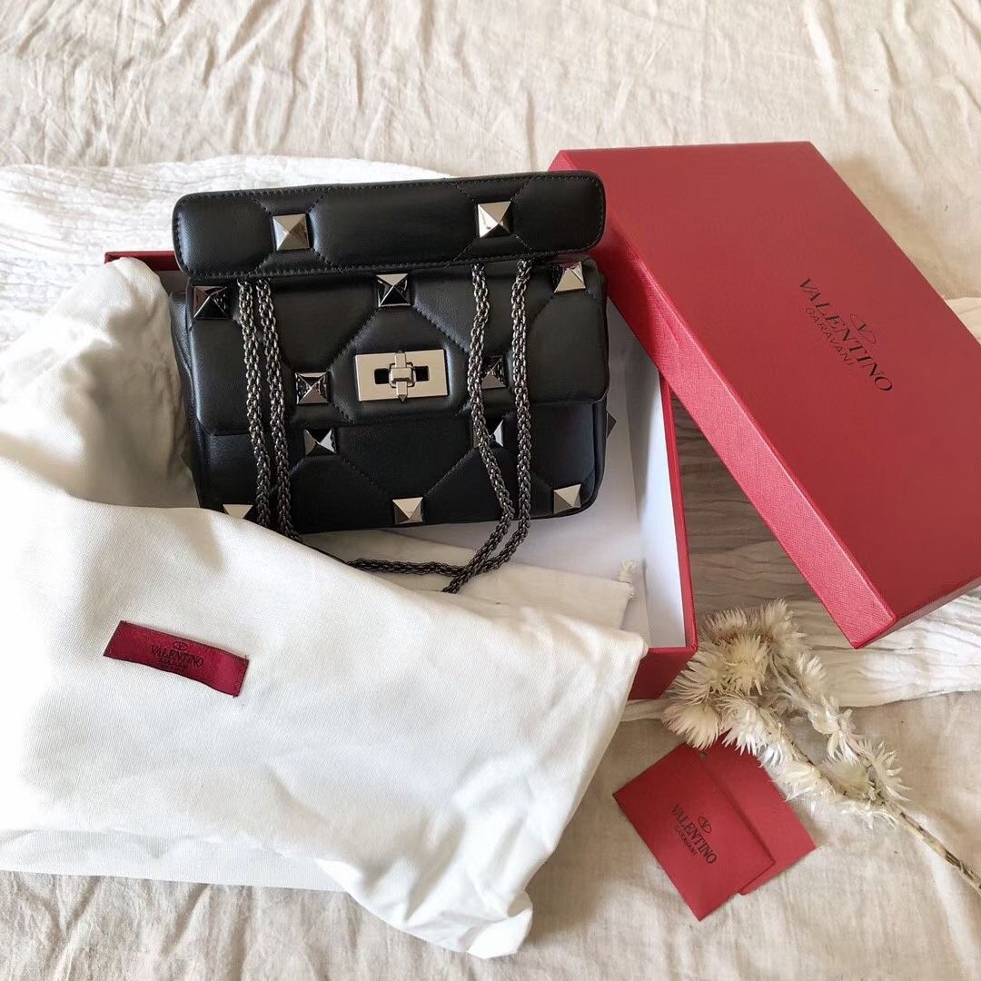 Valentino Medium Roman Stud Tonal Chain Bag In Noir Nappa