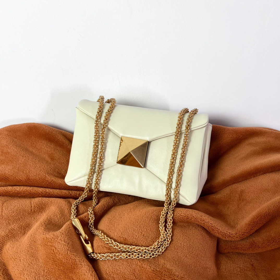 Valentino One Stud Chain Bag In White Nappa Leather