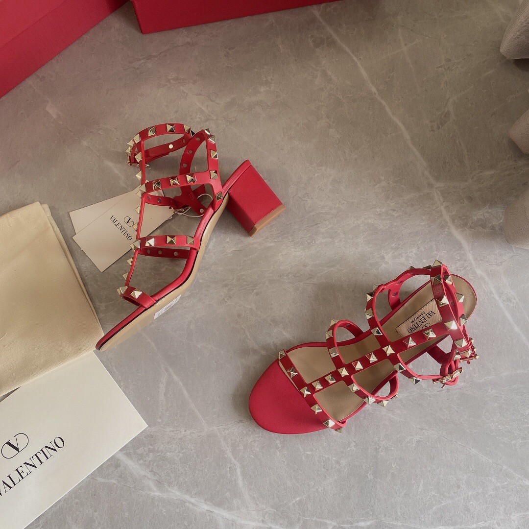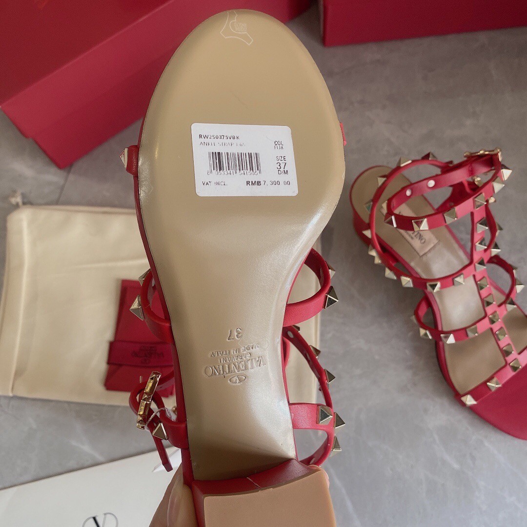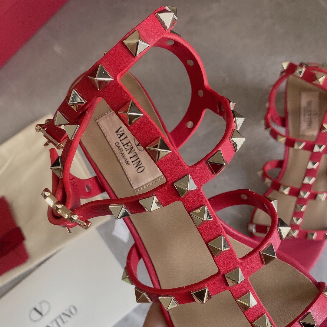 Valentino Rockstud Ankle Strap Sandals 60mm In Red Calfskin