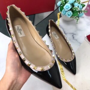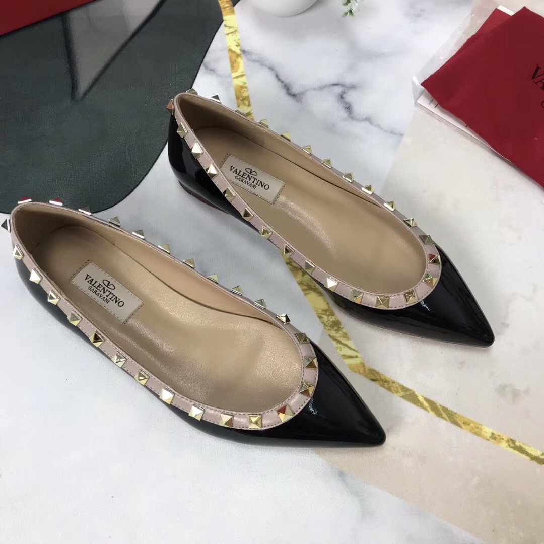 Valentino Rockstud Ballet Flats In Black Patent Leather