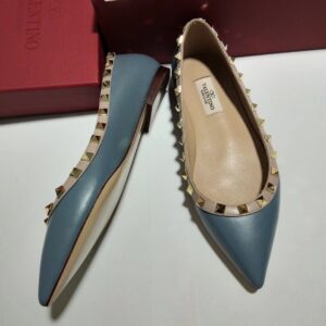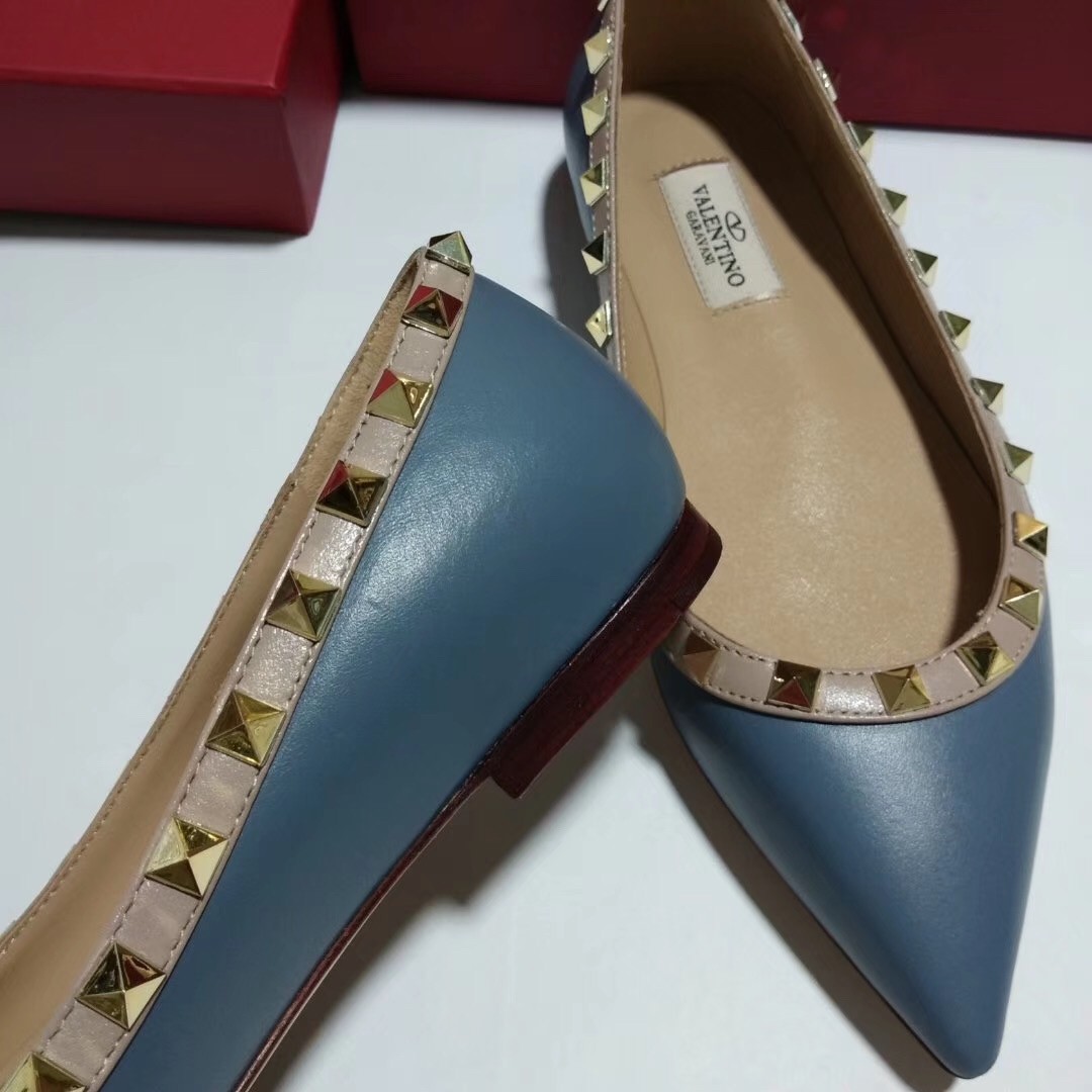 Valentino Rockstud Ballet Flats In Blue Calfskin