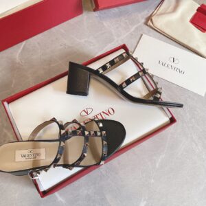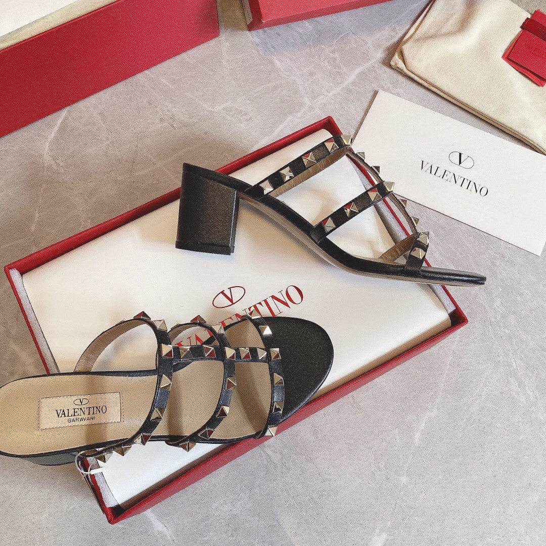 Valentino Rockstud Slide Sandals 60mm In Black Calfskin