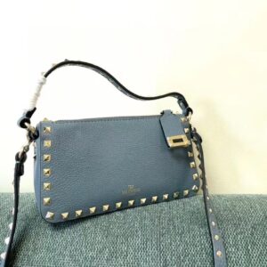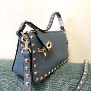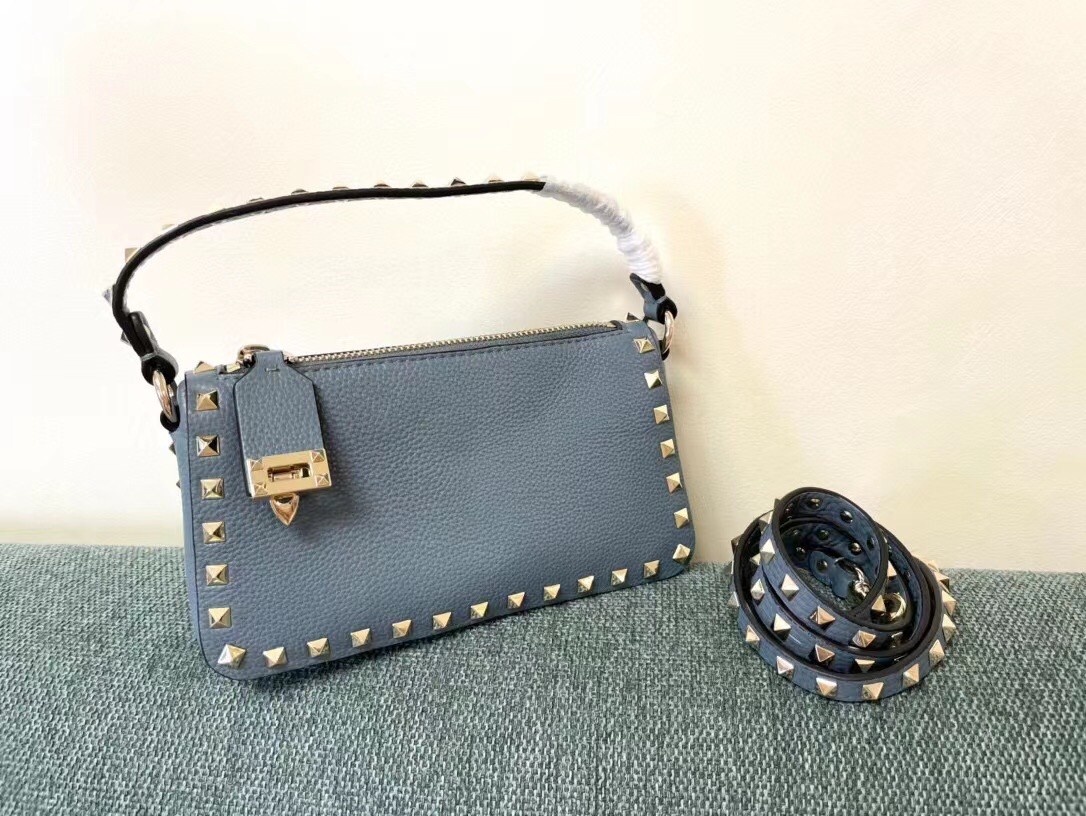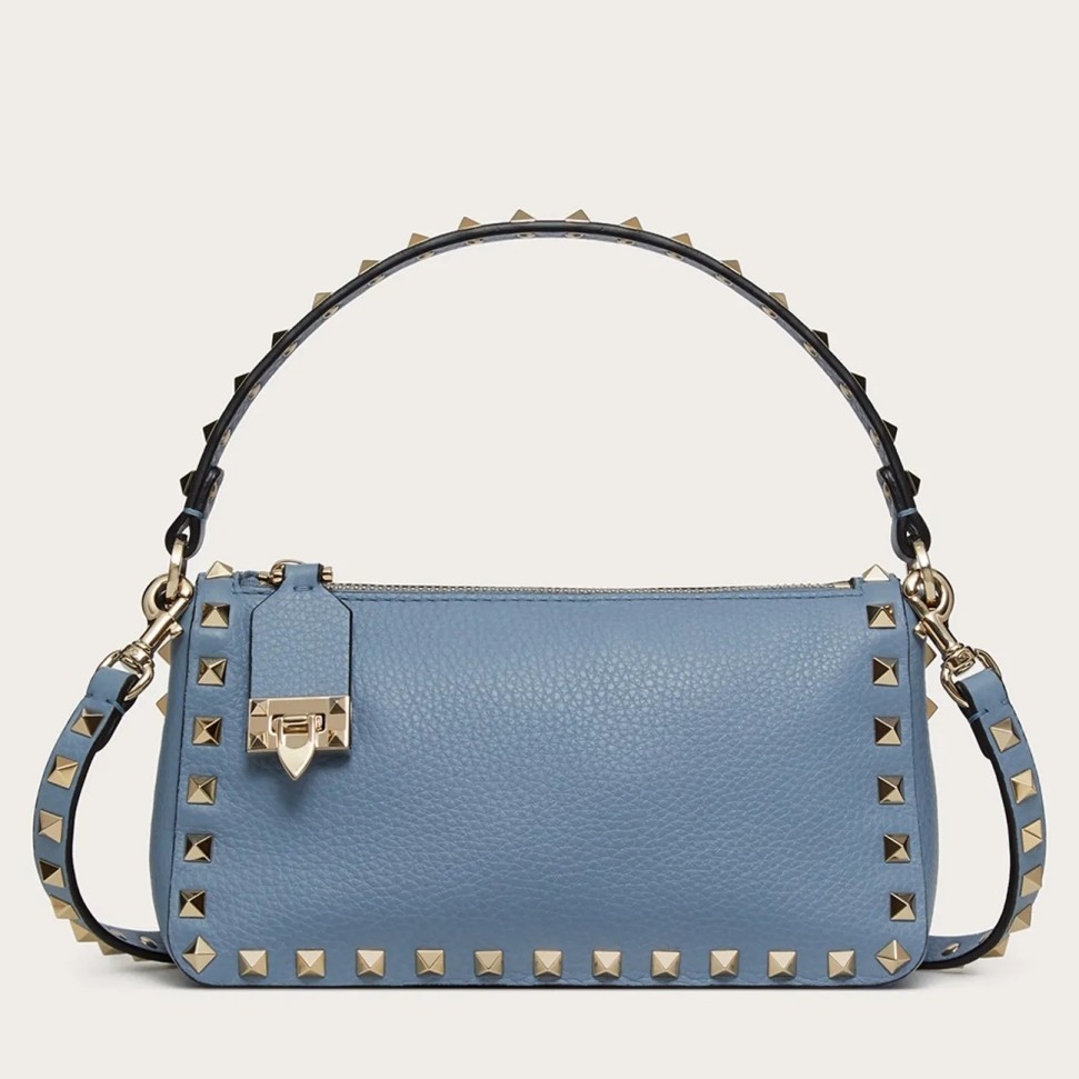 Valentino Rockstud Small Crossbody Bag In Blue Grained Calfskin