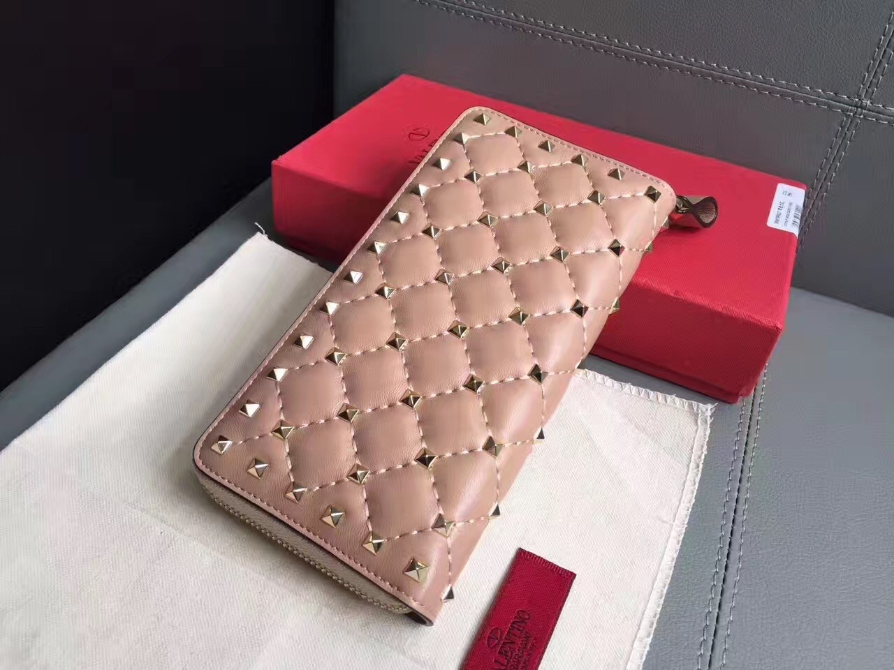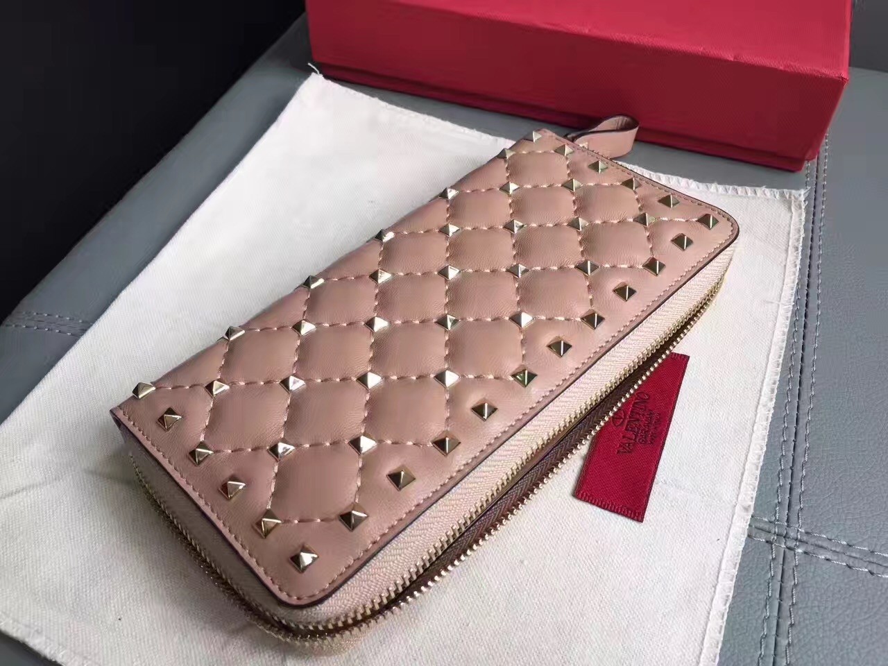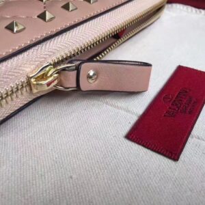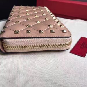 Valentino Rockstud Spike Zip Wallet In Pastel Pink Lambskin