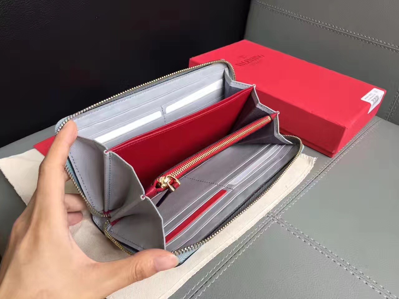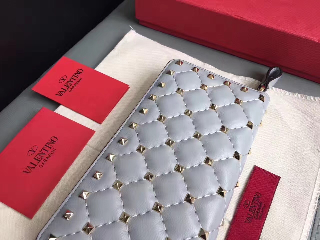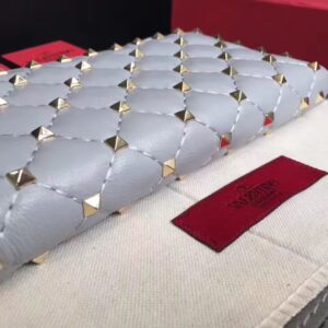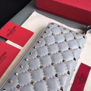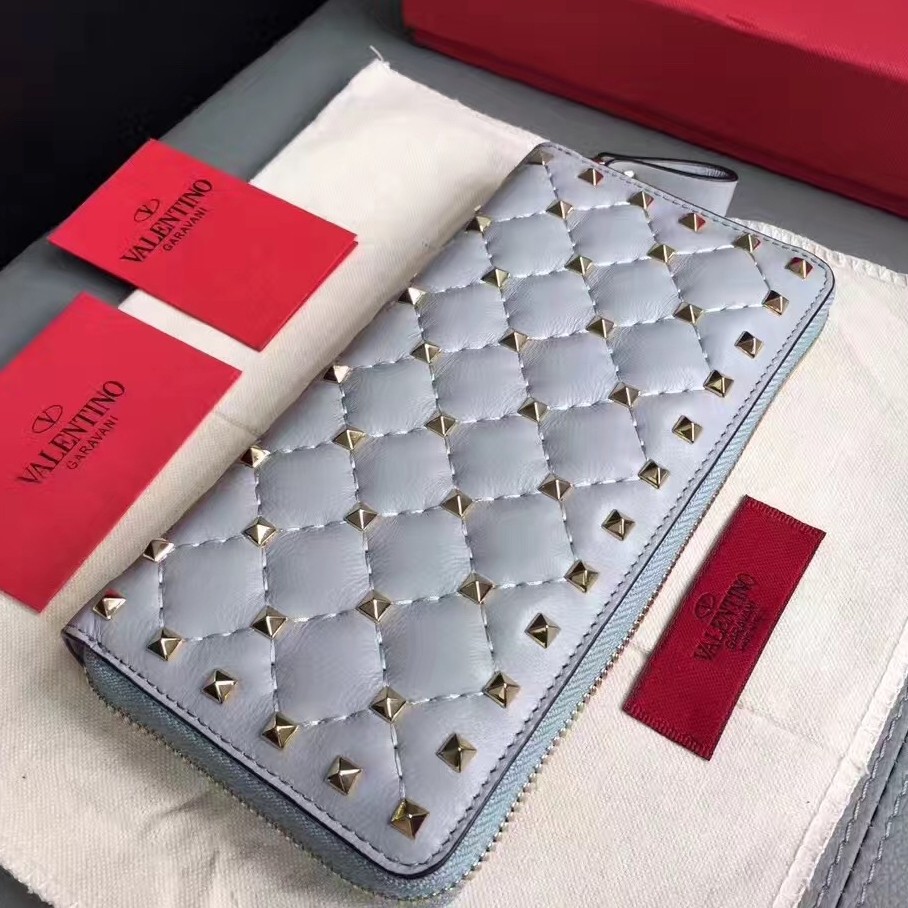 Valentino Rockstud Spike Zip Wallet In Sky Blue Lambskin