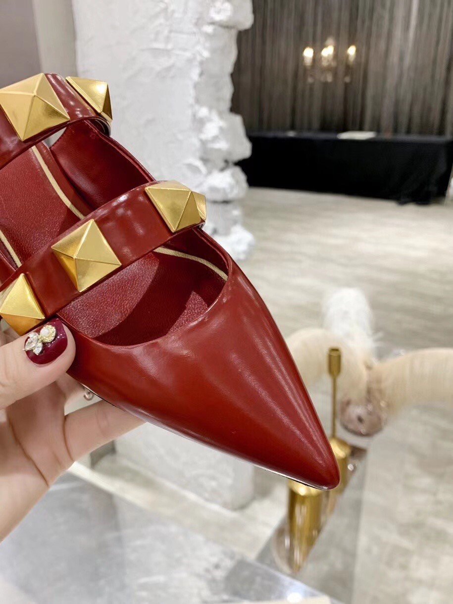 Valentino Roman Stud Flat Mules In Bordeaux Leather