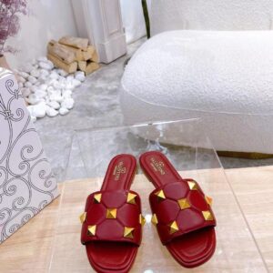 Valentino Roman Stud Flat Slides In Red Quilted Nappa