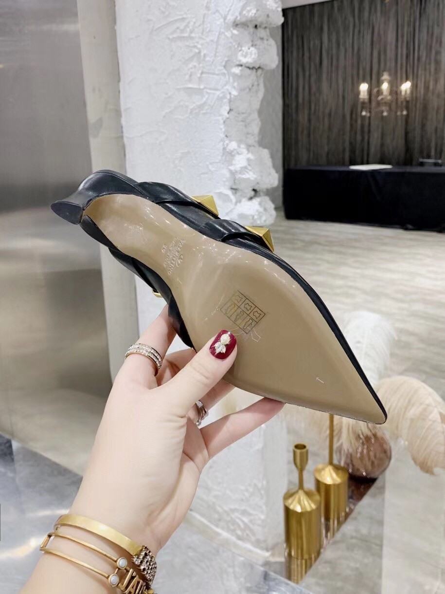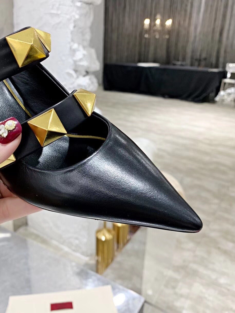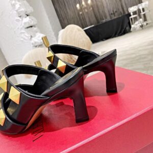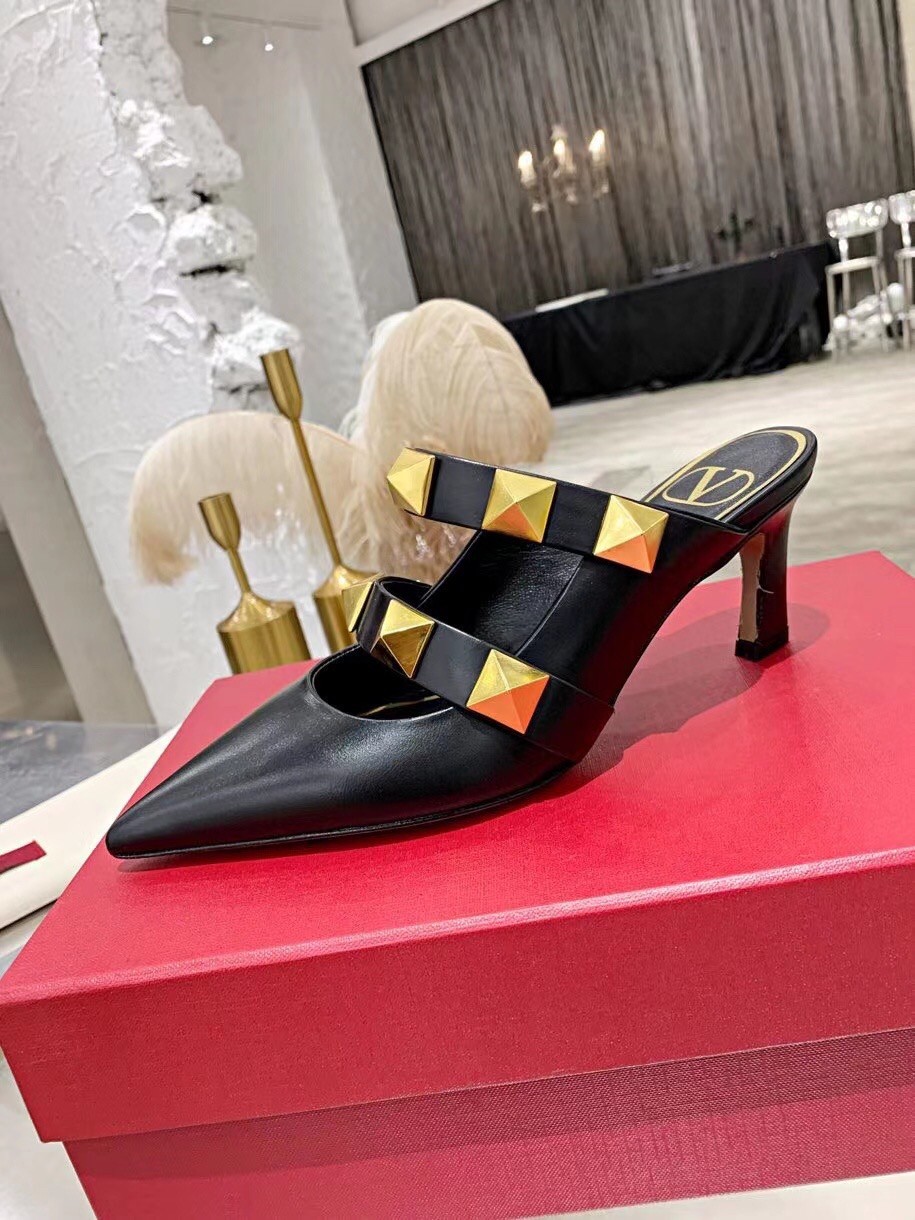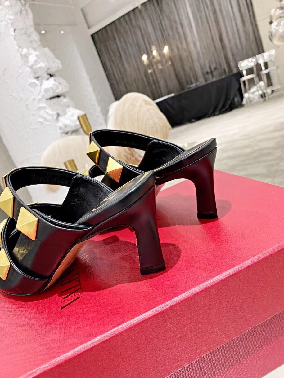 Valentino Roman Stud Mules 65mm In Black Calfskin