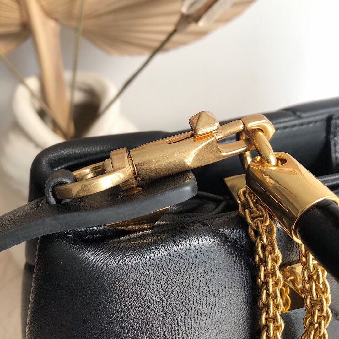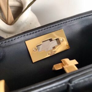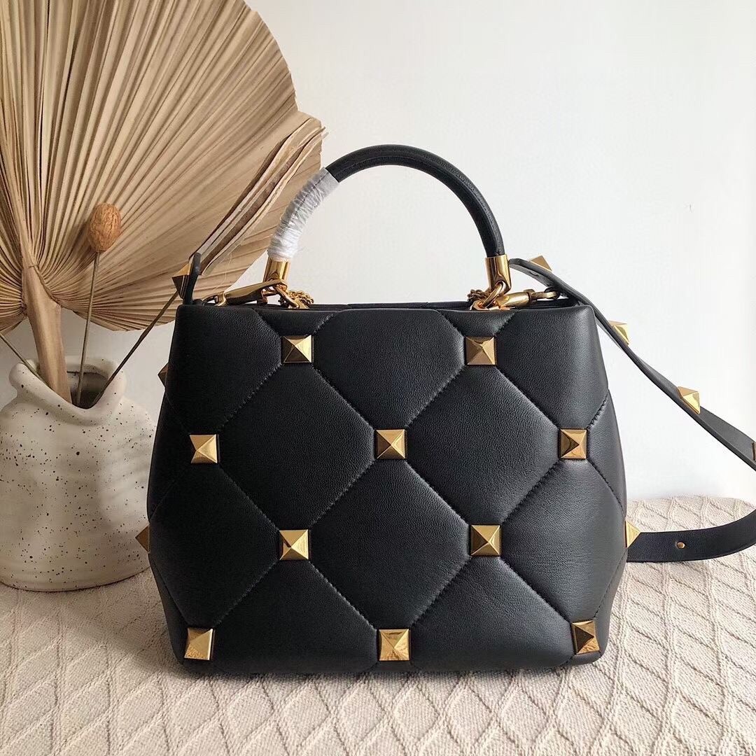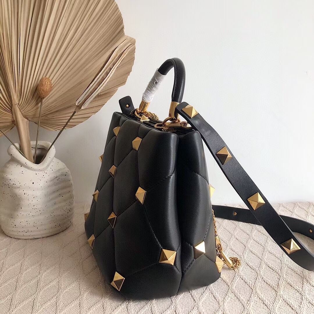Valentino Roman Stud Top Handle Bag In Black Nappa