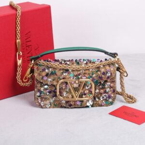 Valentino Small Loco Shoulder Bag with Gold 3D-effect Embroidery
