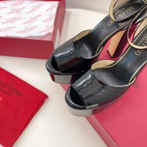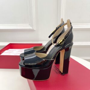 Valentino Tan-Go Platform Sandals 155mm In Black Patent Leather