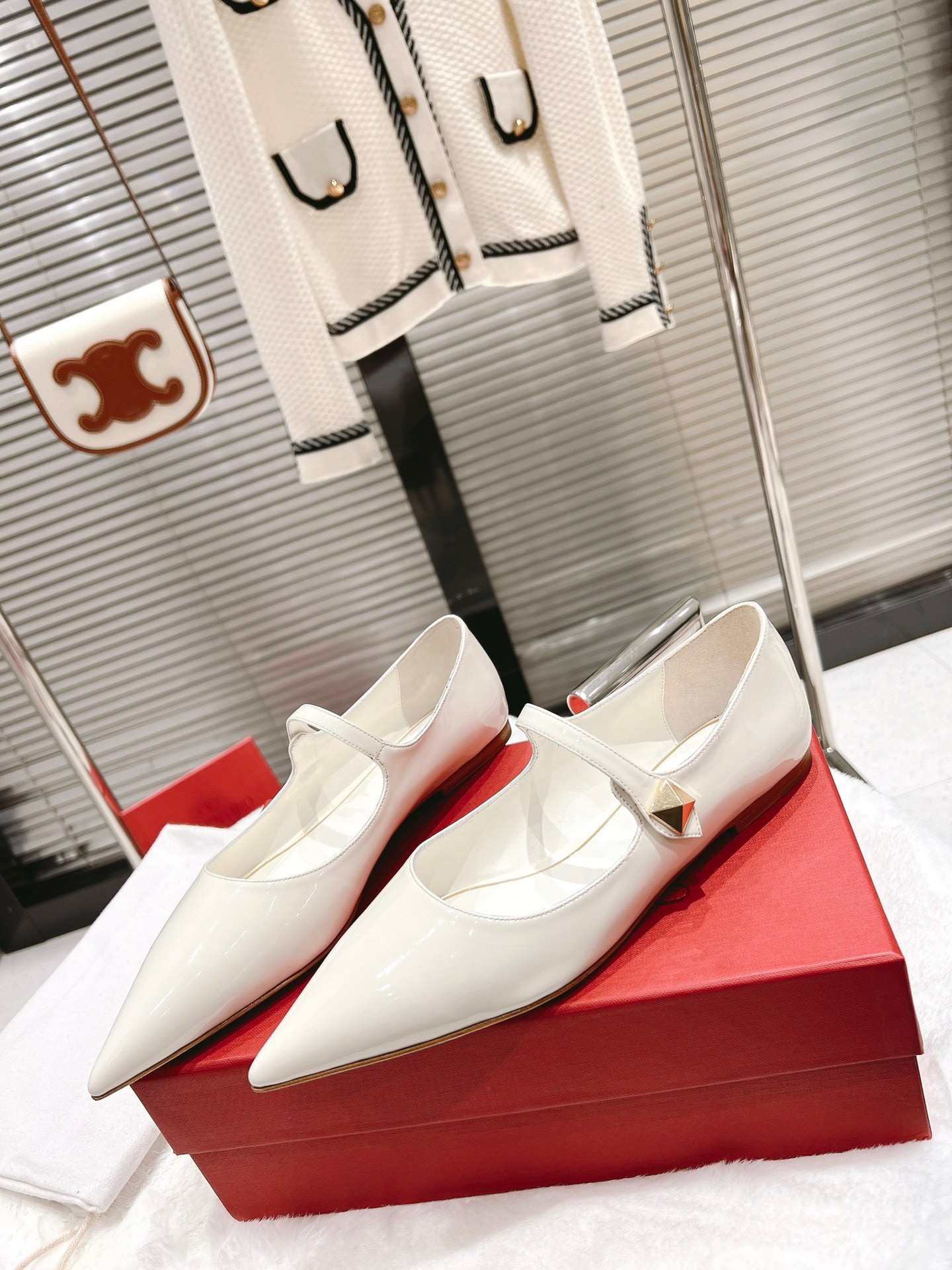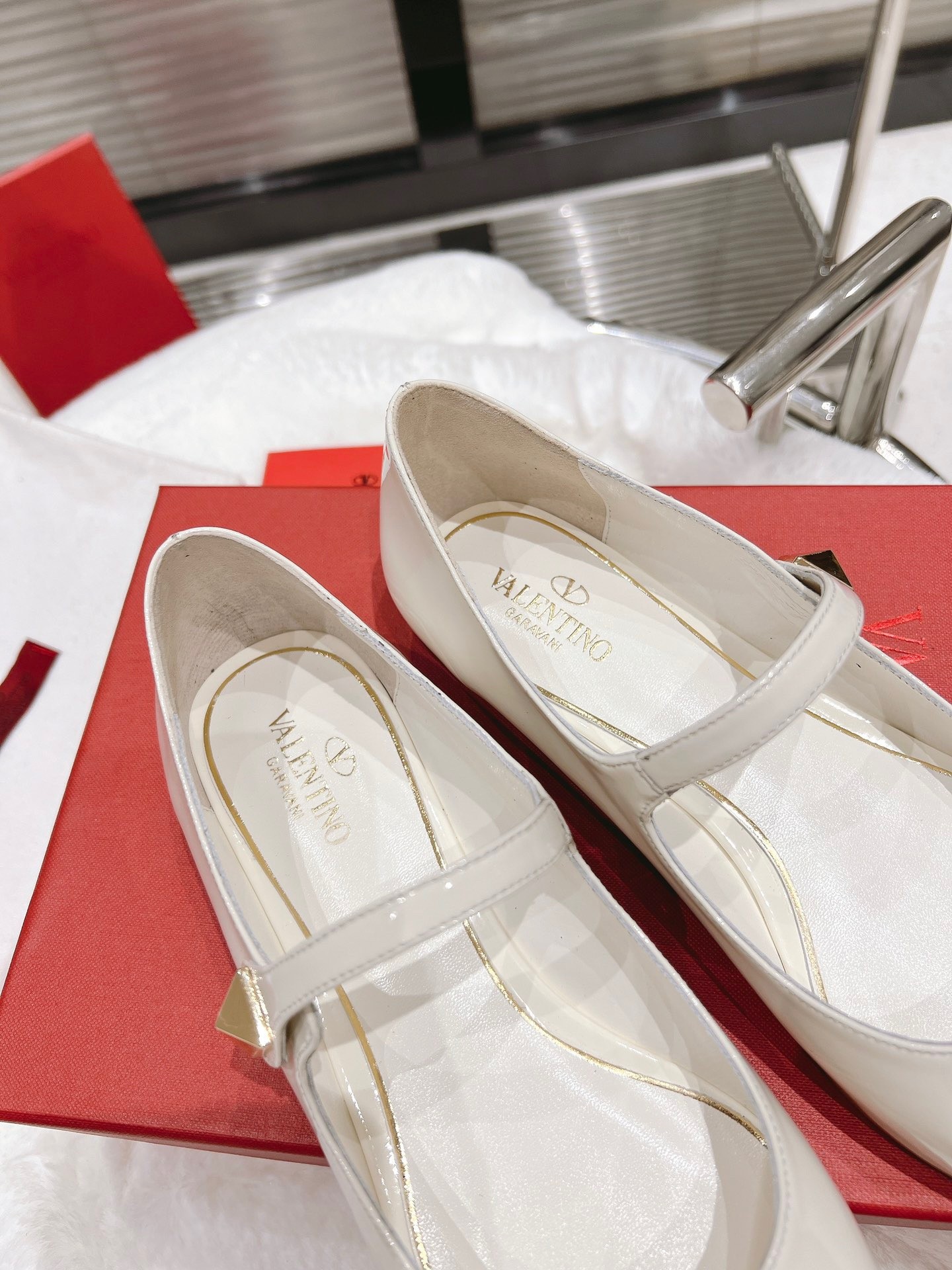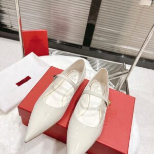 Valentino Tiptoe Ballet Flats In White Patent Leather