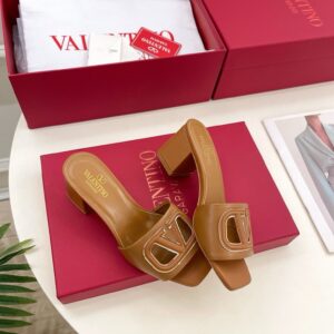 Valentino VLogo Cut-out Slide Sandals 60mm in Brown Leather