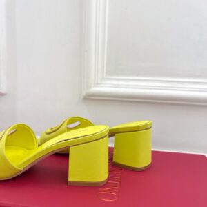 Valentino VLogo Cut-out Slide Sandals 60mm in Yellow Leather