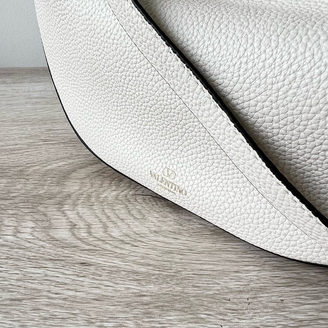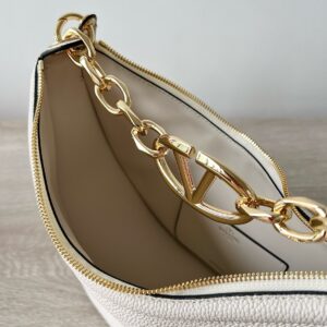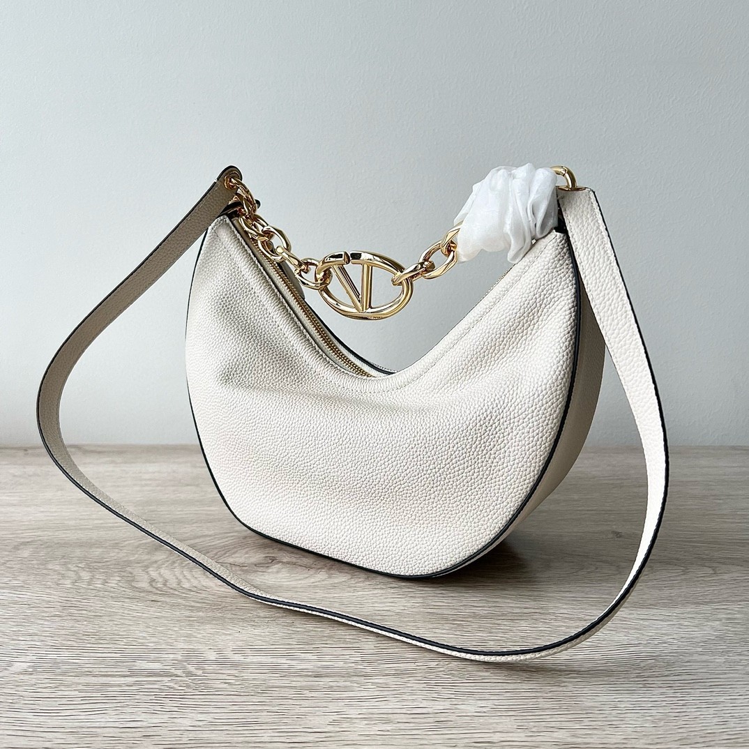 Valentino VLogo Moon Small Hobo Bag with Chain in White Leather