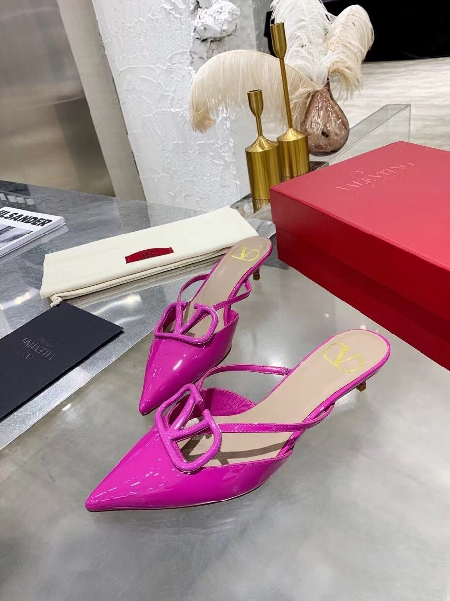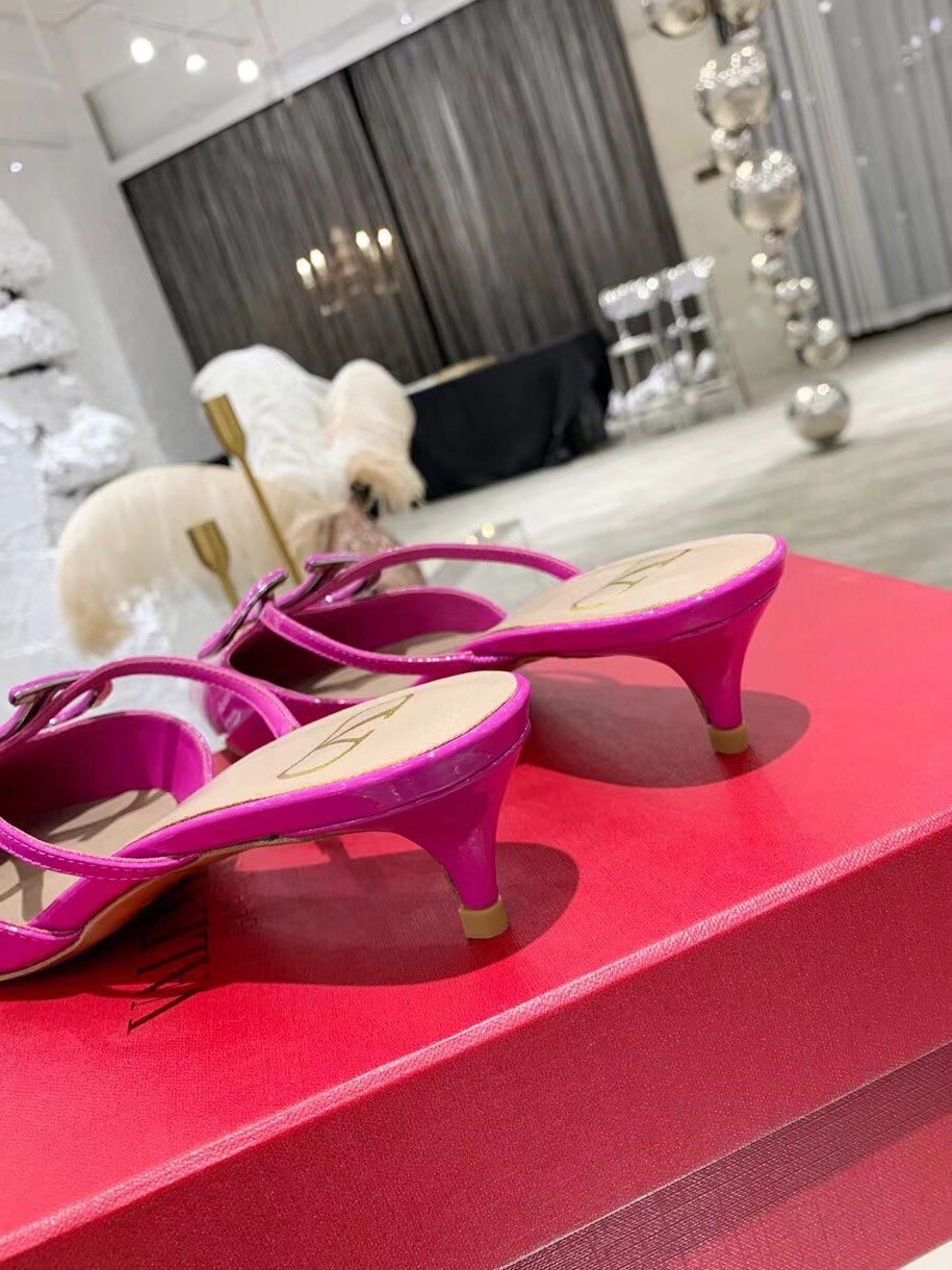 Valentino VLogo Mules 40mm In Rose Purple Patent Leather