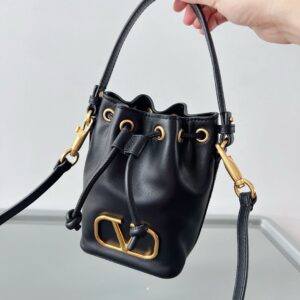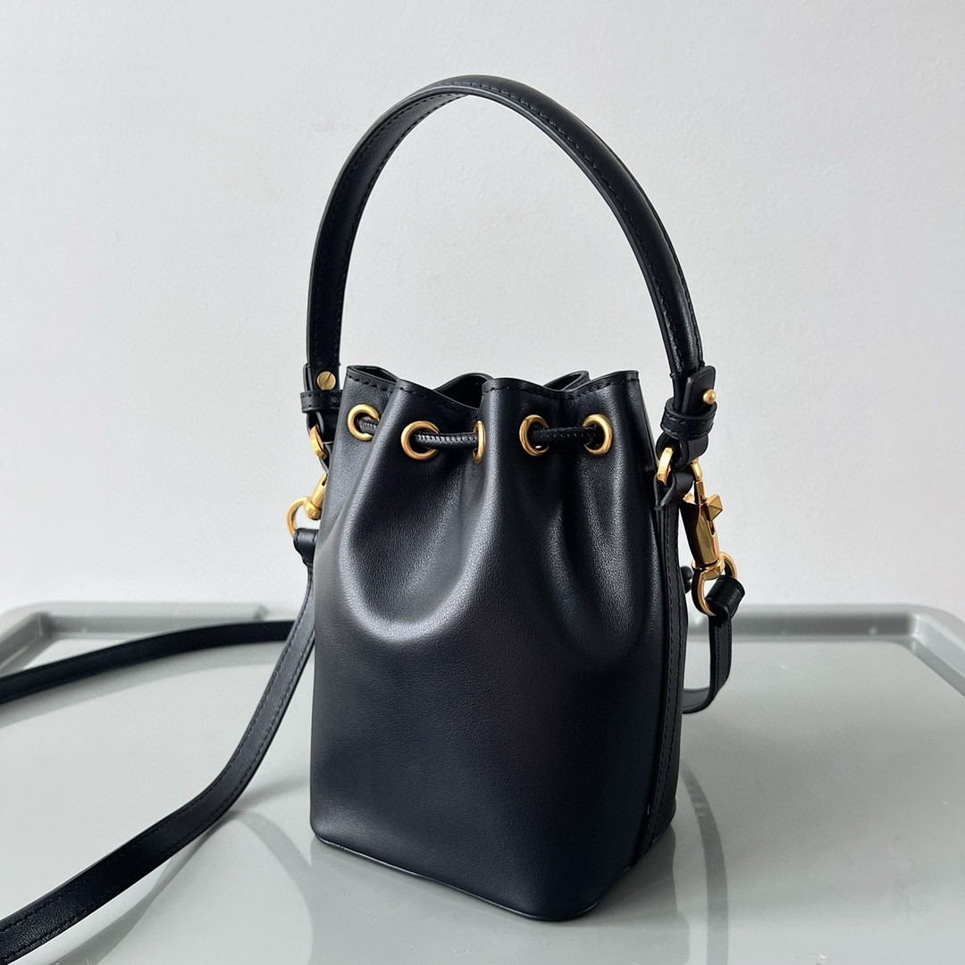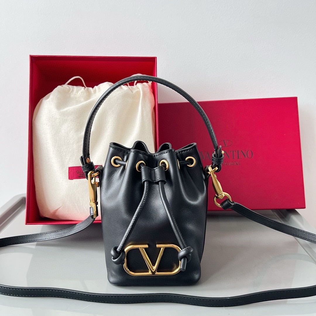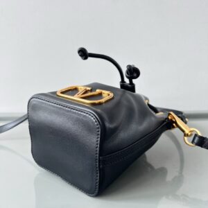 Valentino VLogo Signature Mini Bucket Bag in Black Calfskin