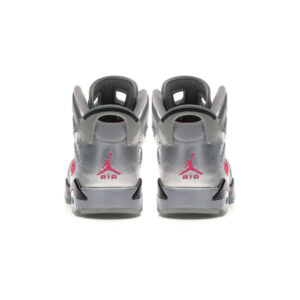 The Air Jordan 6 Retro GG ‘Valentine’s Day’ is an all-silver take on the classic kick. Released in women’s sizing, the shoe features pink and black hits around the body of the shoe, pink laces, an embroidered heart and basketball logo, and a matching pink Jumpman logo on the heel.